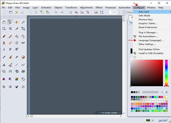1、我们下载并根据安装向导安装好软件后,打开软件。2、点击Configure(配置),选择下拉栏中的language(语言)。