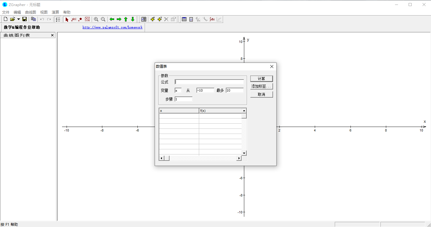 1、可以绘制 y(x), x(y),极限,变量曲线图以及表格定义的函数。