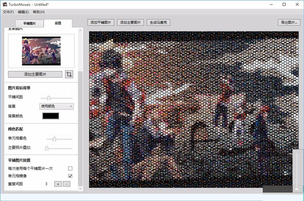 1、该软件最少支持49张平铺图片 2、支持将拼图导出为JPEG、PNG或TIFF,可以发送到打印店或从本地打印机打印3、可以对主要图片进行裁剪和缩放操作