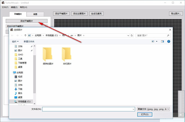 4、点击“添加平铺图片”按键可以打开电脑文件夹,然后选择图片