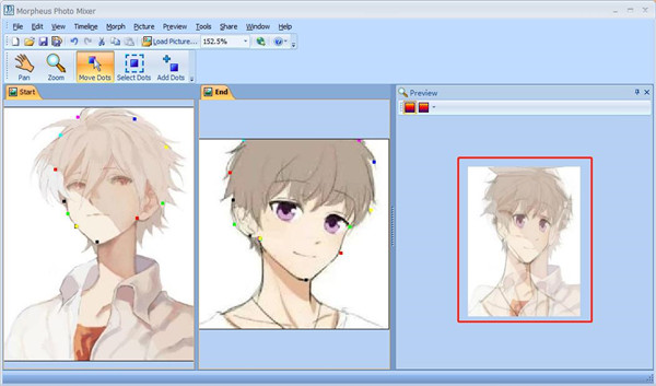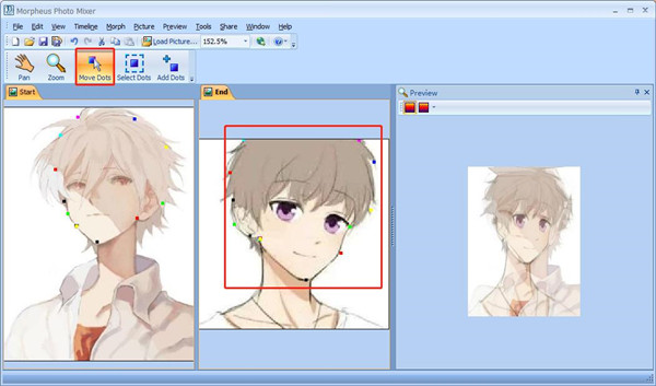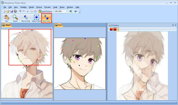 4、再点击add dots,设定好两张图片彼此之间的变形对应点