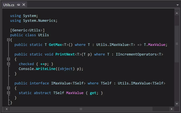 接口中的 static abstract 和 static virtual 成员。