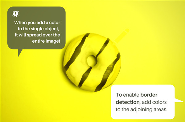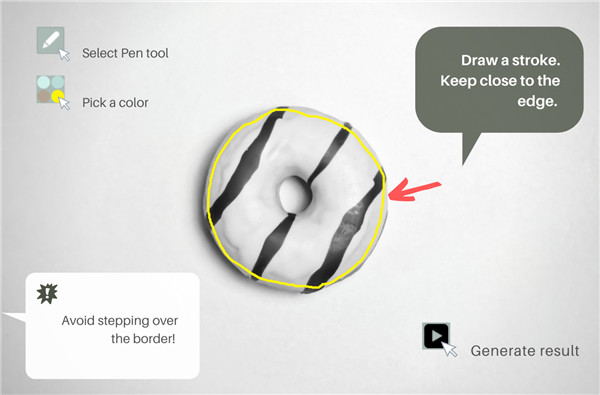 在我们的示例中,我们希望将甜甜圈着色为明亮的黄色调。为此,我们将从内部圈出它的外边界。
