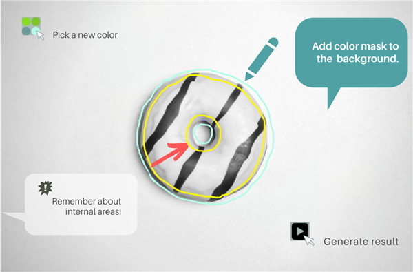 如您所知,您可以通过绘制称为mask 的简单笔触为图像添加颜色。掩码让我们向 CODIJY 传递我们希望程序遵守的边界的大致位置,以及关于我们对每个图像区域的首选色调的说明。