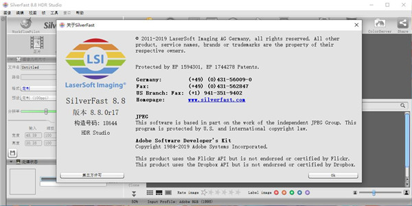 8、点击帮助下的关于,如下图SilverFast HDR Studio注册完成,可以放心使用软件
