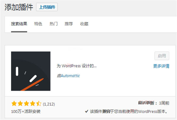 1、在wordpress后台的插件中点击安装插件,搜索框输入WP Super Cache,看到如下结果,安装并启用。