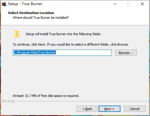 安装向导默认设置的软件默认安装路径为C:\Program Files\True Burner