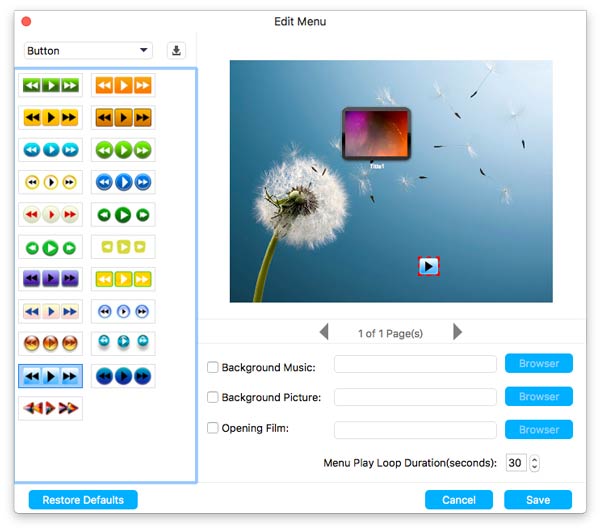 随意更改DVD菜单样式您可以更改DVD菜单框,菜单按钮并从菜单下拉列表中编辑菜单文本。这些迷人的菜单框和按钮将增强您的视觉体验。
