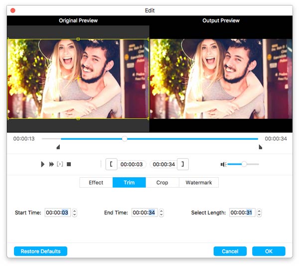 偶然发现编辑按钮,你将进入编辑窗口。在这里,您可以调整视频效果,修剪不想要的视频部分,裁剪视频和给视频添加水印。