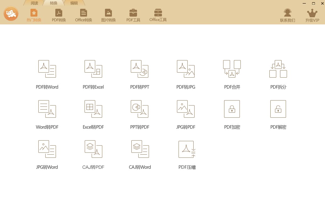 支持15种互转:如PDF、Word、Excel、PPT、JPG等格式互转,如pdf转word、pdf转jpg、Word转PDF等;并提供PDF加密、PDF解密、PDF合并、PDF拆分、PDF压缩等功能。