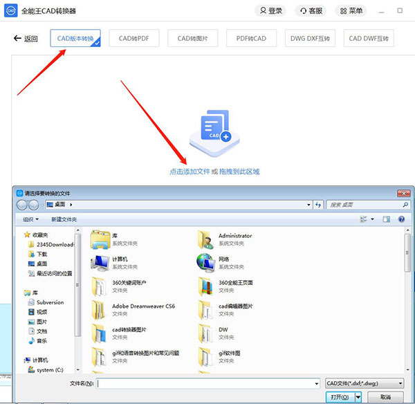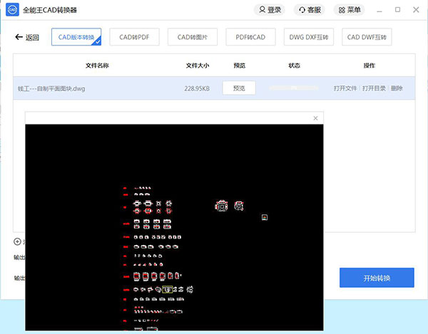 1、图纸版本转换,支持CAD图纸DWG和DXF格式的互转,以及支持多种图纸版本的互转