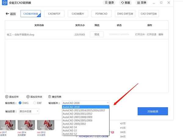 1、打开软件点击,CAD版本转换,然后选择相关想转换的cad软件。