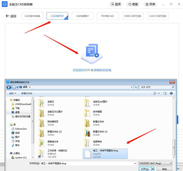 2、点击添加文件或者是拖拽文件,就可以把你想要转换的cad文件,进行相关的转换。