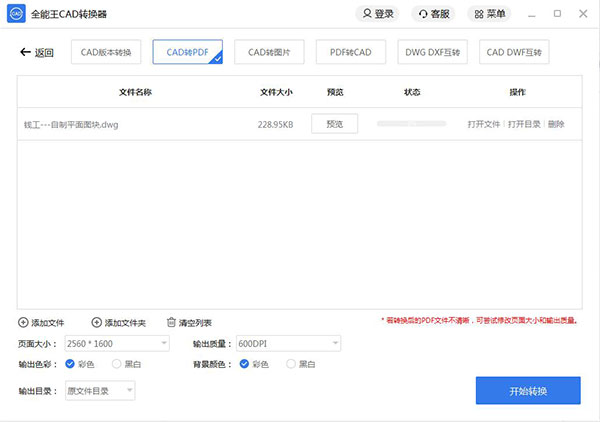 3、图纸转换成PDF文件,可以将CAD图纸格式的文件转换成PDF格式的文件,且支持多张图纸的转换