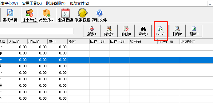 点击货品列表窗体上面的"Excel"按钮,即可把当前表格中的货品资料导出为Excel文件。