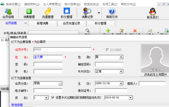 在主界面的“编辑会员”菜单中选择“会员信息”