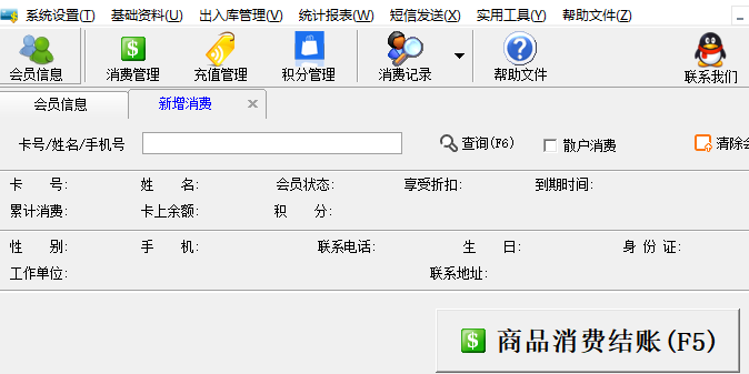 对会员消费情况进行录入,自动完成累计积分,消费打折。也可以增加会员消费商品的详细信息。