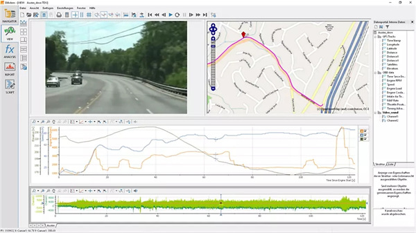 -使用DIAdem VIEW中新的“鸟瞰图”显示类型,您可以从鸟瞰图的角度显示雷达数据,包括道路,车道,物体列表和传感器视场。您可以将此数据与GPS数据以及视频中检测到的对象进行同步。使用VIEW的回放功能可以开始鸟瞰视图,并同时回放检测到的物体,相关的测量数据和视频,或者将光标移到特定的时间点。