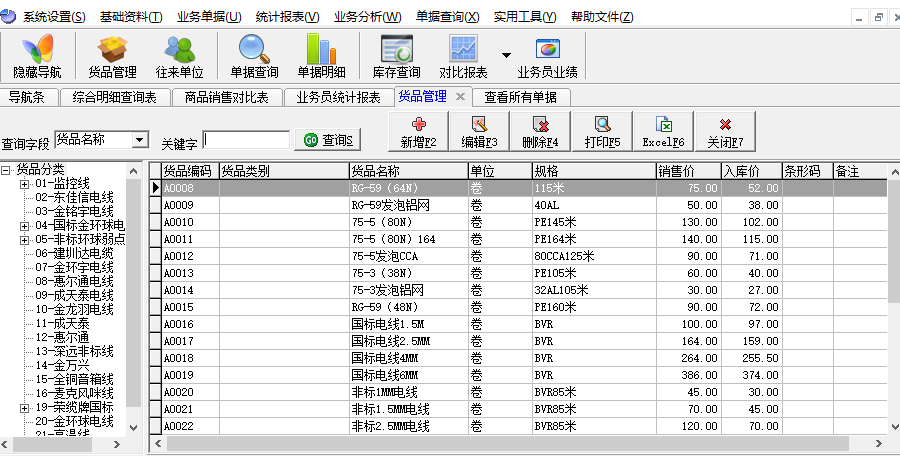 里诺销售管理软件还支持从Excel导入商品和往来单位数据,货品资料和往来单位支持树形多级分类,用户可以掌握及时、准确、全面的销售全局,对市场能做到快速反应!