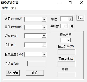 先填入参数算出某一桨叶数下的各项参数,然后选择新桨叶数并清空需计算的参数,点击”计算”重新计算。