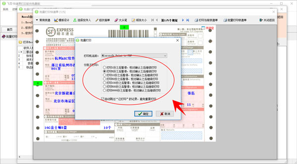 19、选择打印机名称和分批次打印选项