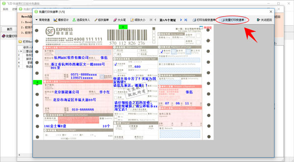 18、调整无误后,点击【批量打印快递单】,进行打印