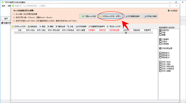 7、点击【打开Excel文件,并导入】按钮