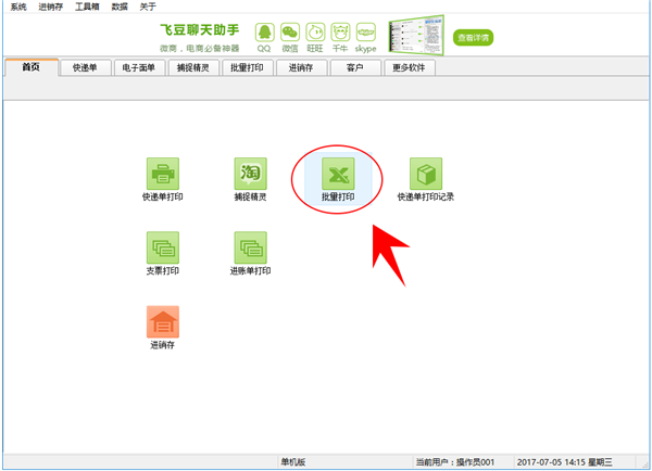 1、打开飞豆快递单打印软件,点击【批量打印】