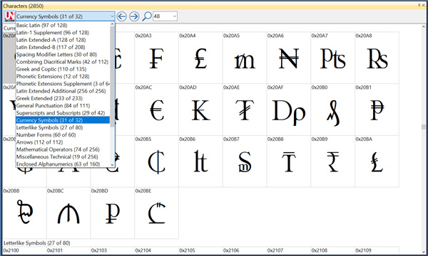 4、字符网格与Uni code块导航