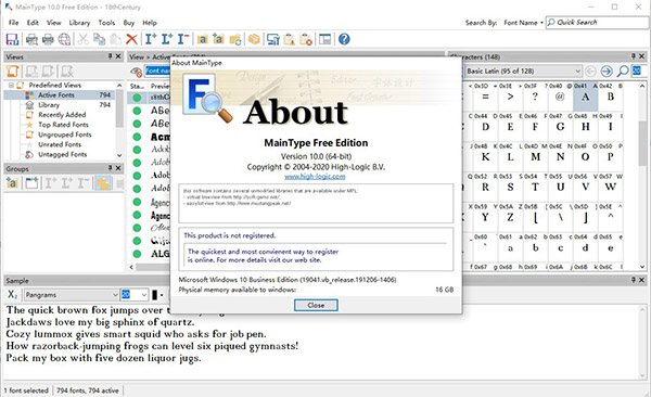 High-Logic MainType还拥有直观的操作界面,可以让您一眼就找到需要的东西,同时不仅支持轻松查找、预览、组织、安装和打印字体等功能,全方位满足用户的使用需求。支持所有流行的字体格式,包含有TrueType、OpenType、TrueType集合、Postscript类型、矢量和栅格字体,并与简单的字体预览应用程序不同,支持自定义模型来进行预览展示。