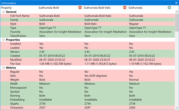 只需将5种字体拖放到字体信息面板上即可比较字体属性。这有助于您确定要使用,卸载,分类或打印的字体版本