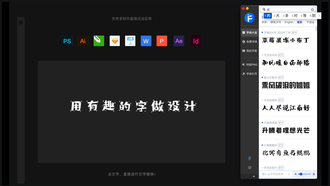 直接、快速与软件交互:无需下载安装字体快速在软件中使用字体。
