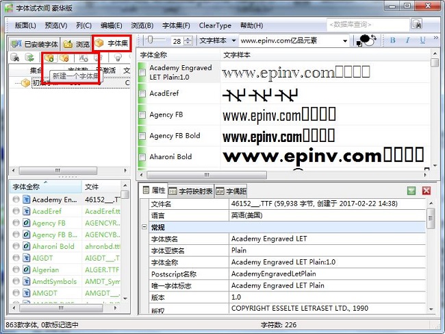 8、可以创建任意的字体集数据库,打开或保存到新的位置,这样便于保存,共享已有的字体集分类