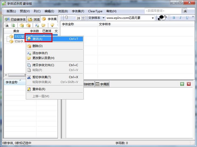5、选择好后,也是在建新的字体集名称上点击鼠标右键,选择“激活”就行了