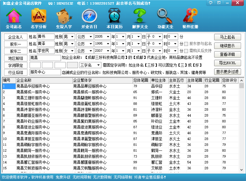 1、自动根据法人和股东八字五行匹配数秒快速生成数10000以上名字。