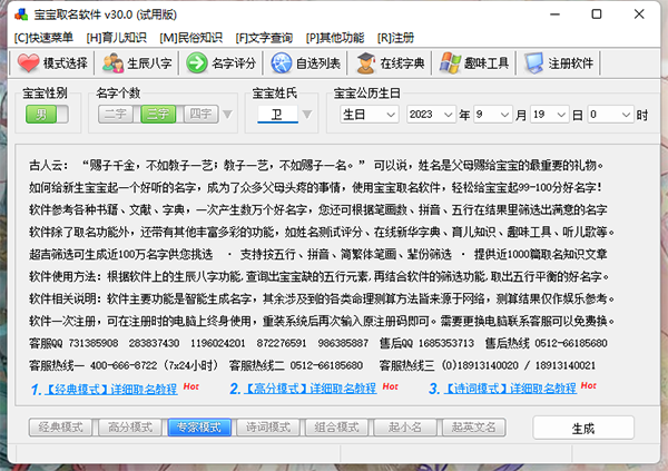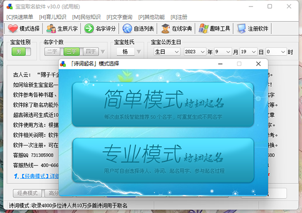 3、可按高分起名、诗词起名、组合起名、起小名、起英文名等模式生成名字
