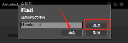 2、点击【更改】,将文件解压到指定目录中,点击【确定】。