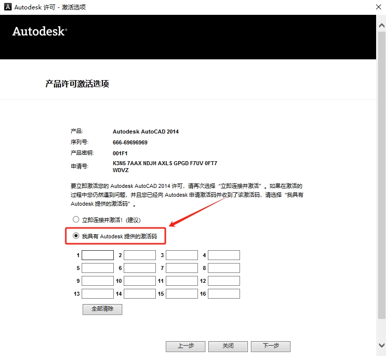 15、点击【我具有 Autodesk 提供的激活码】。