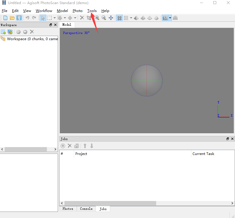 1、在photoScan主界面上点击“tools”;