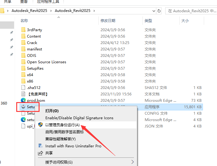 1、选择安装程序Setup鼠标右键以管理员身份运行。