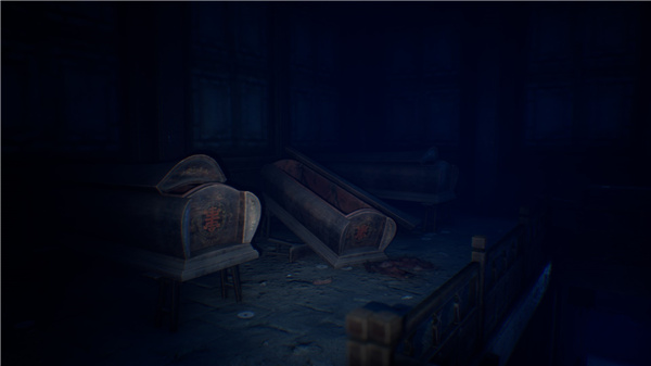 比如刚开始玩家探索四周的棺材可以得到碎片,集齐得到午夜2点开门的线索,根据提示找到秒针拨动到差几秒2点的时候,就可以通过第一扇门,之后按照颜色顺序开始通过走廊,不按照颜色顺序则会回到原处,并且每一次开始游戏,线索上的颜色都是不同的。