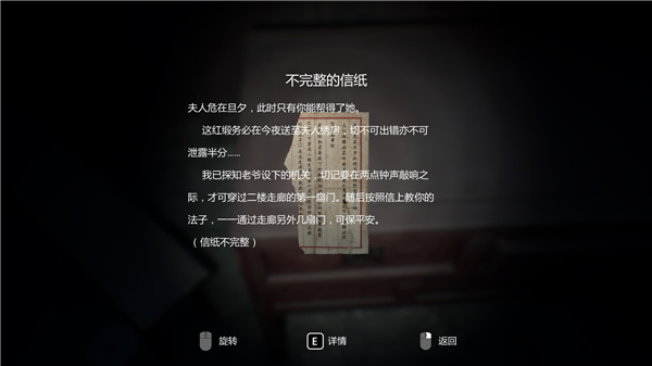 在恐怖压抑的清末古宅中用你的智慧解开所有谜团,根据散落的故事碎片推理,打开那一道道被封印了百年的大门。