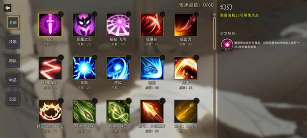 玩家通过传承、升级都可以获得技能点来解锁技能,技能随着玩家等级的提升会有更多分支可以使用。