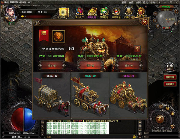 4、强化升星:强化神石可以通过杀怪获得,强化失败不降级,使用元宝100%成功,强化部位,换装备不影响。