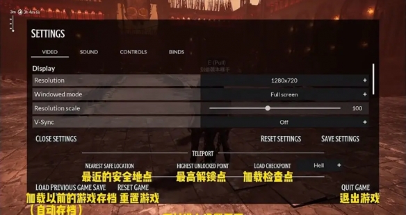 1、进入游戏后按ESC选项可以调出设置,有几个选项,玩家点击HIGHEST UNLOCKED POINT就可以回到最高点了。