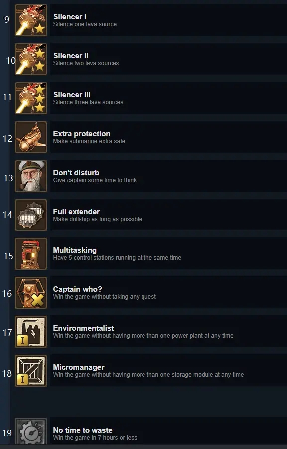 16、Captain who? 要求不跟船长对话,也不接任何任务。这个成就建议二周目再做,熟悉了地图和升科技的流程了才好做。