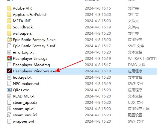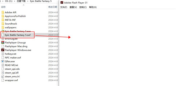 2、将“Epic Battle Fantasy.swf”拖至flashplayer,打开。