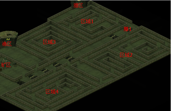 1、进入迷宫之后会被雕1拦路,需要经过区域1在猎区获得7份黑木蛇肉才能通过。
