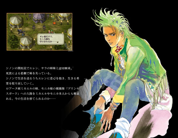 开拓民,5岁时刚出生的妹妹因死蚀过世后搬家搬到新农村居住。这是个正义感强又重义气的热血青年,爱慕从小一起长大的青梅竹马艾伦频遭打枪,在莫尼卡公主来到了西农村求助时第一个跳出来的张帮助与米卡尔。事后也因其他正向阳光的人格特质而被米卡尔钦点为摩尼卡的新任贴身护卫。