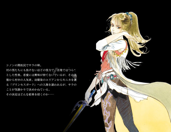 小麦等农产品批发的农家。外貌清秀漂亮大美女,但有与美容颜蛋不相称的怪力及运动细胞,不但与我长格斗马术,而且还是村内的腕力比冠军,拥有远胜许多男性的高战斗力。虽然村内追求者众多,但本人对恋爱毫不感兴趣,个性自由奔放不喜欢被拘束的生活。